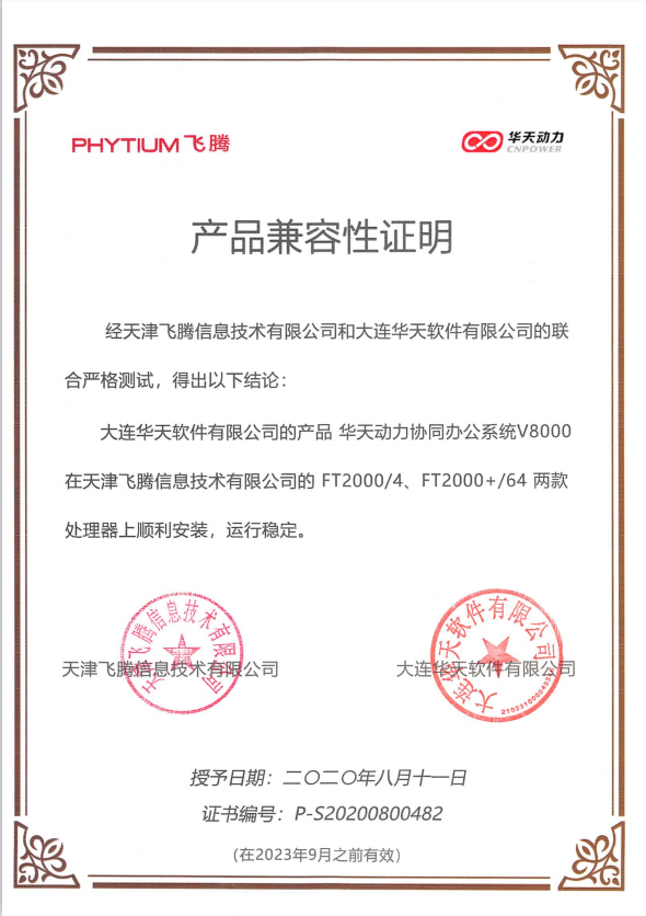 華天動(dòng)力OA與飛騰處理器完成產(chǎn)品兼容互認(rèn)證測試