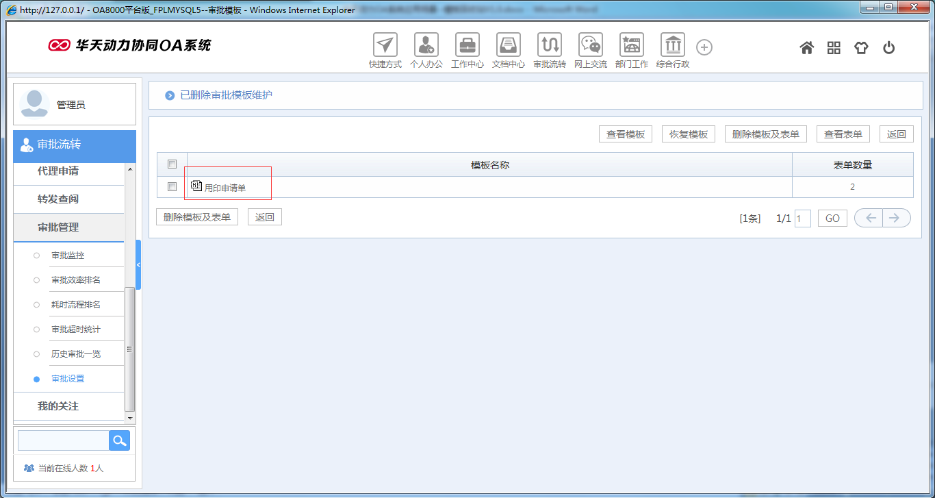 如何運用華天動力OA系統模板回收站功能