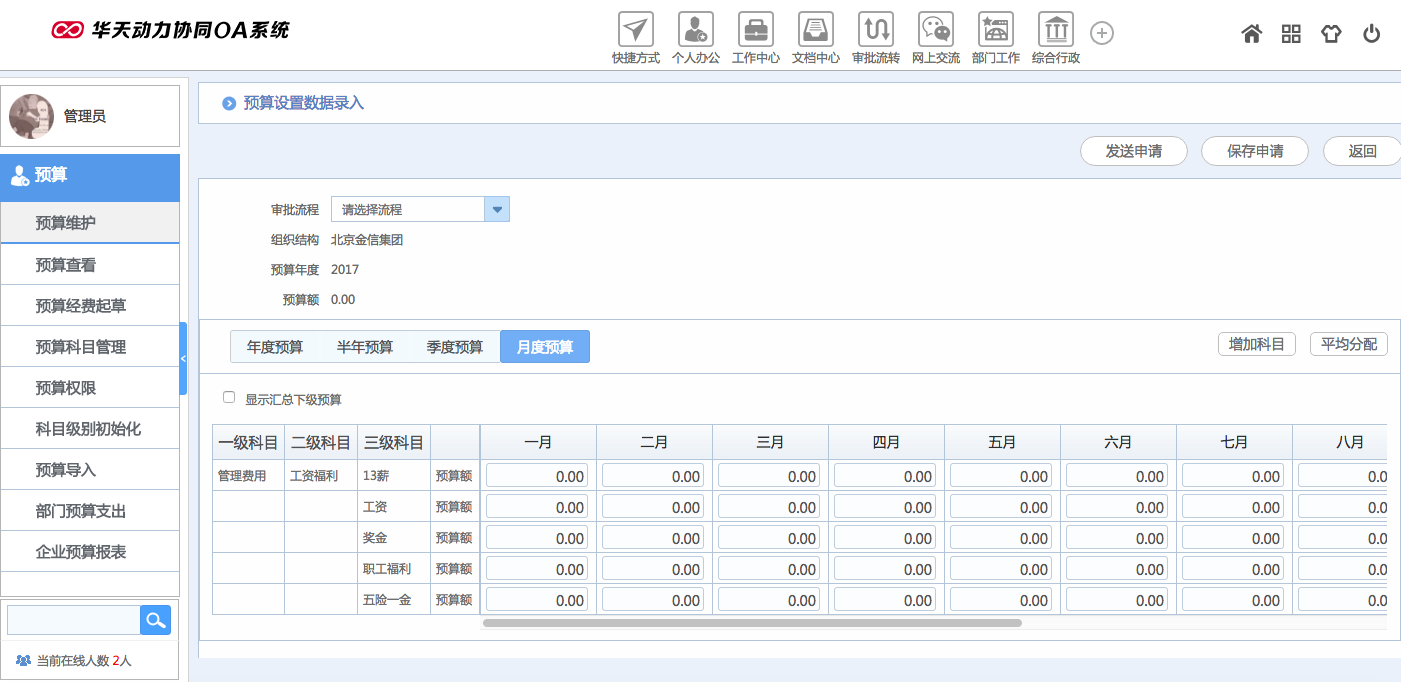 華天動力OA試用版功能測評(十七):預算