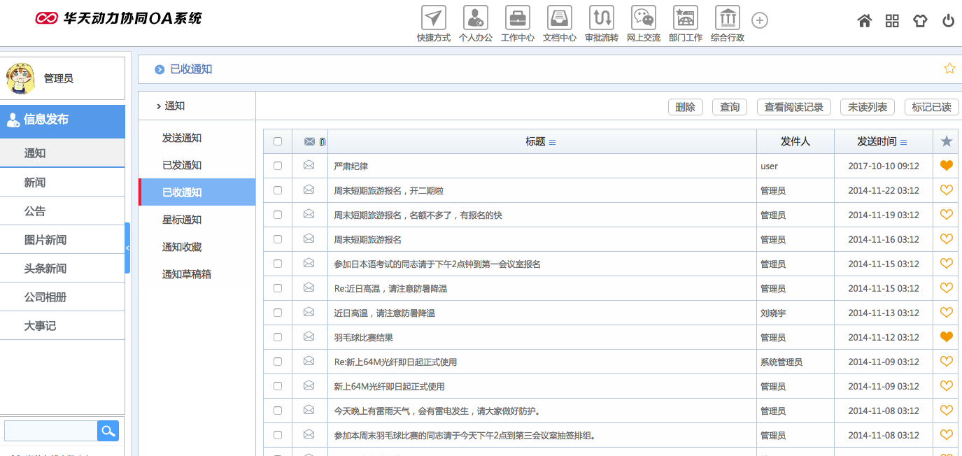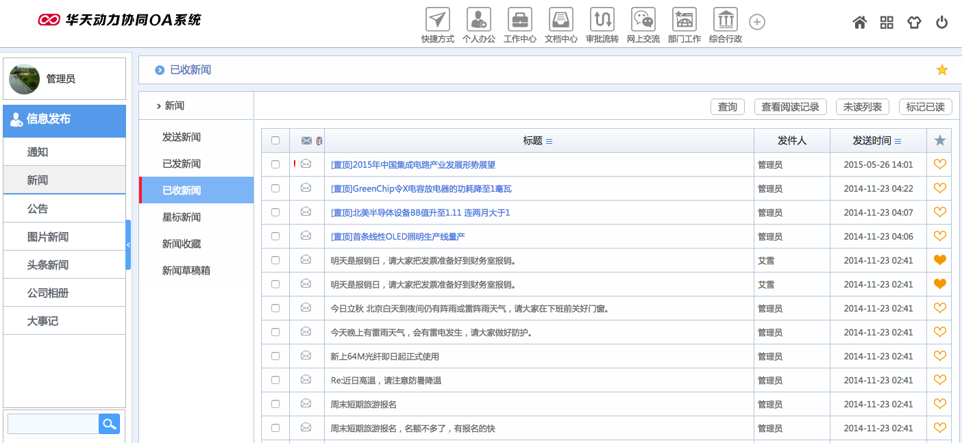 華天動力OA試用版功能測評(十三):信息發布