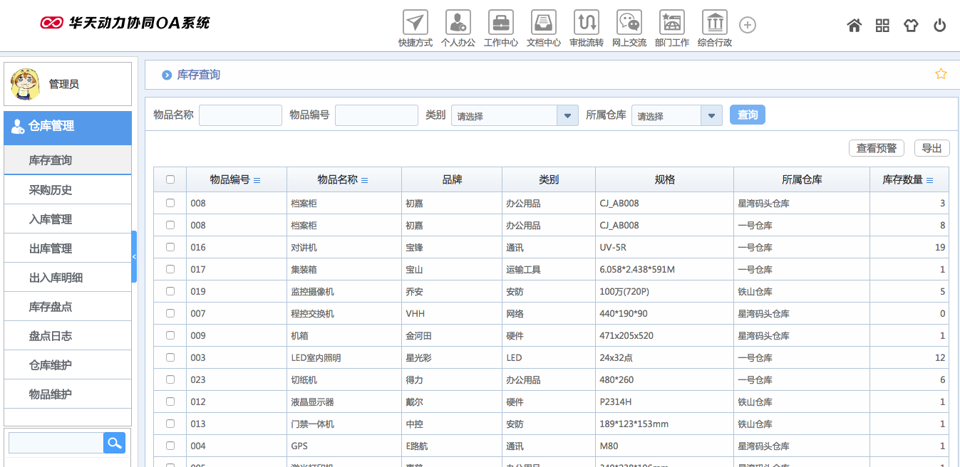 華天動力OA試用版功能測評(十二):倉庫管理
